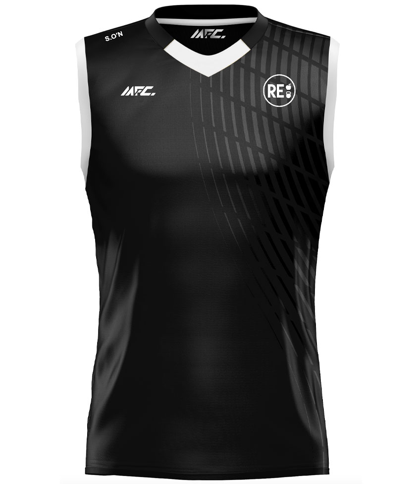 The sleeveless jersey is a modified version of the traditional tight fit playing jersey, designed without sleeves to allow for greater freedom of movement and improved ventilation. It can be made with a traditional round, half or v neck collar and have a taped neck for extra comfort. Made from durable, moisture-wicking fabrics, it helps players stay cool and dry during high-intensity games or training sessions.