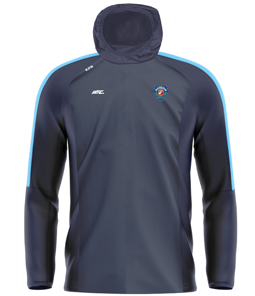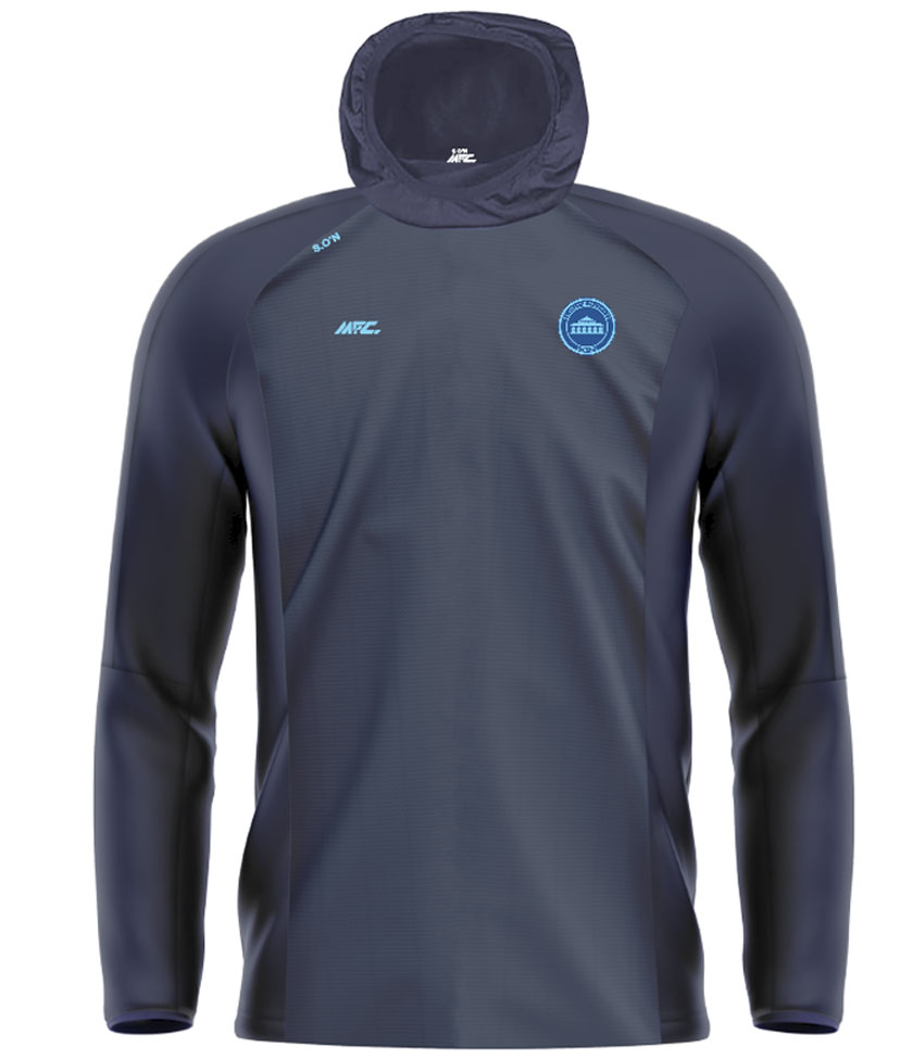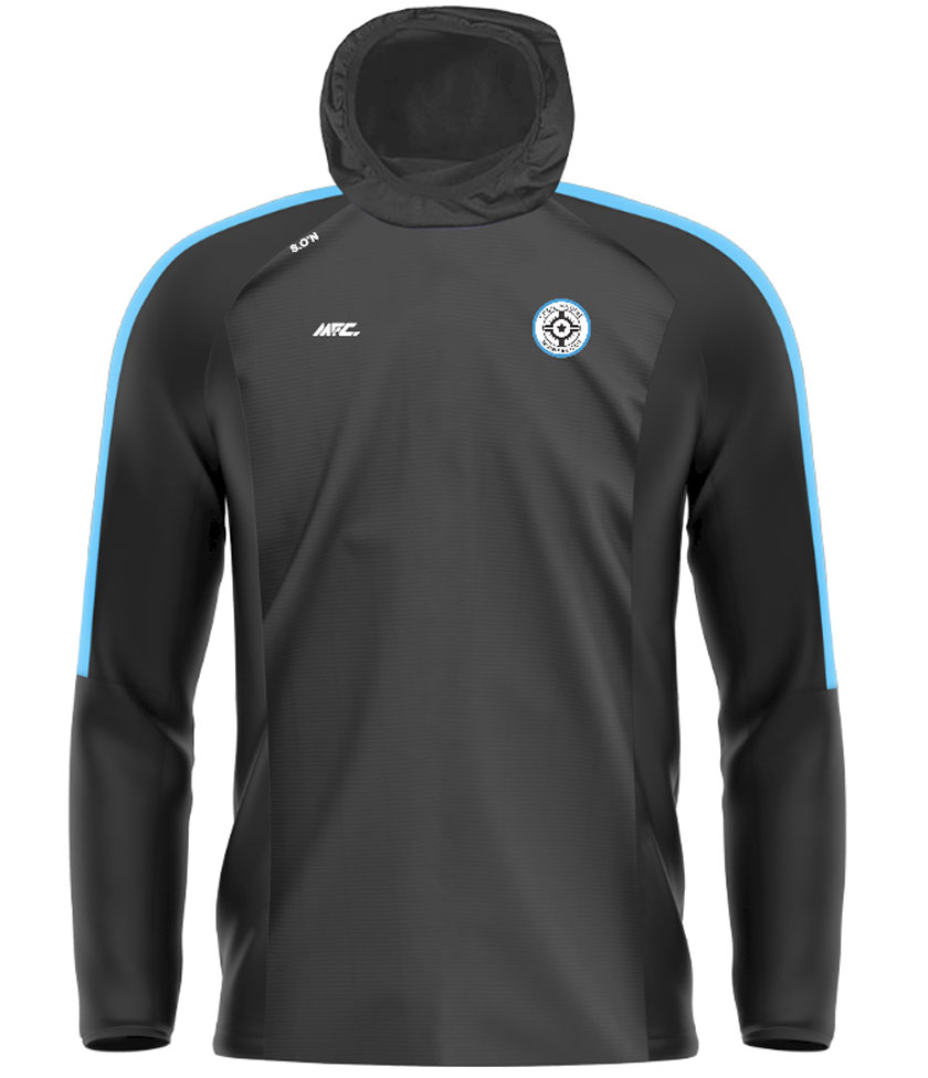 The MFC Pro Training Snoodie is custom-made, featuring your school crest, sponsor logo, and personalized initials.