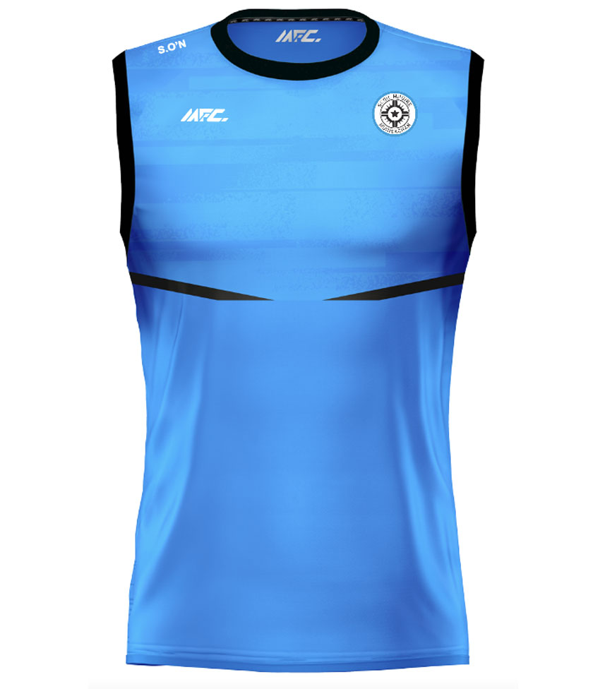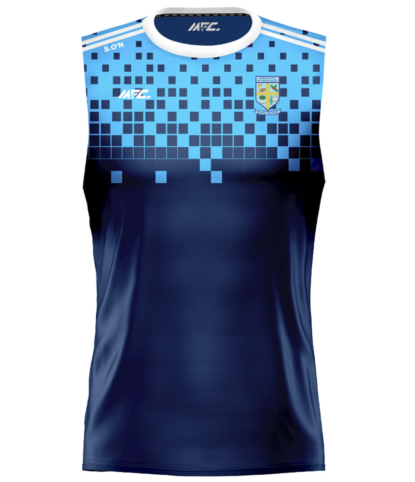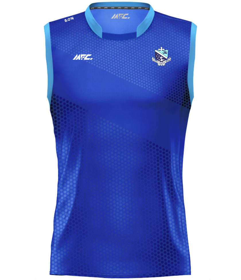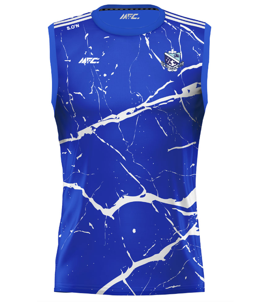 The MFC Nua Sleeveless Jersey is custom-made, featuring your school crest, sponsor logo, and initials, and is available in any design or colour combination.