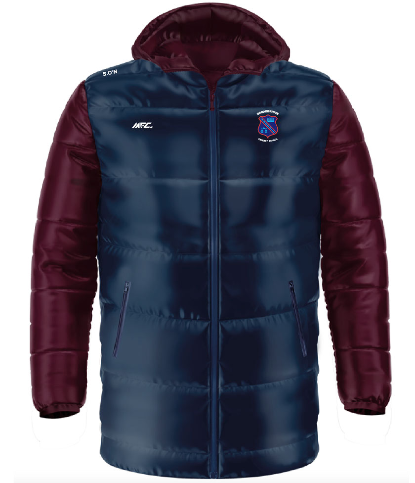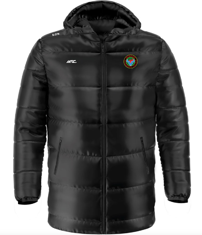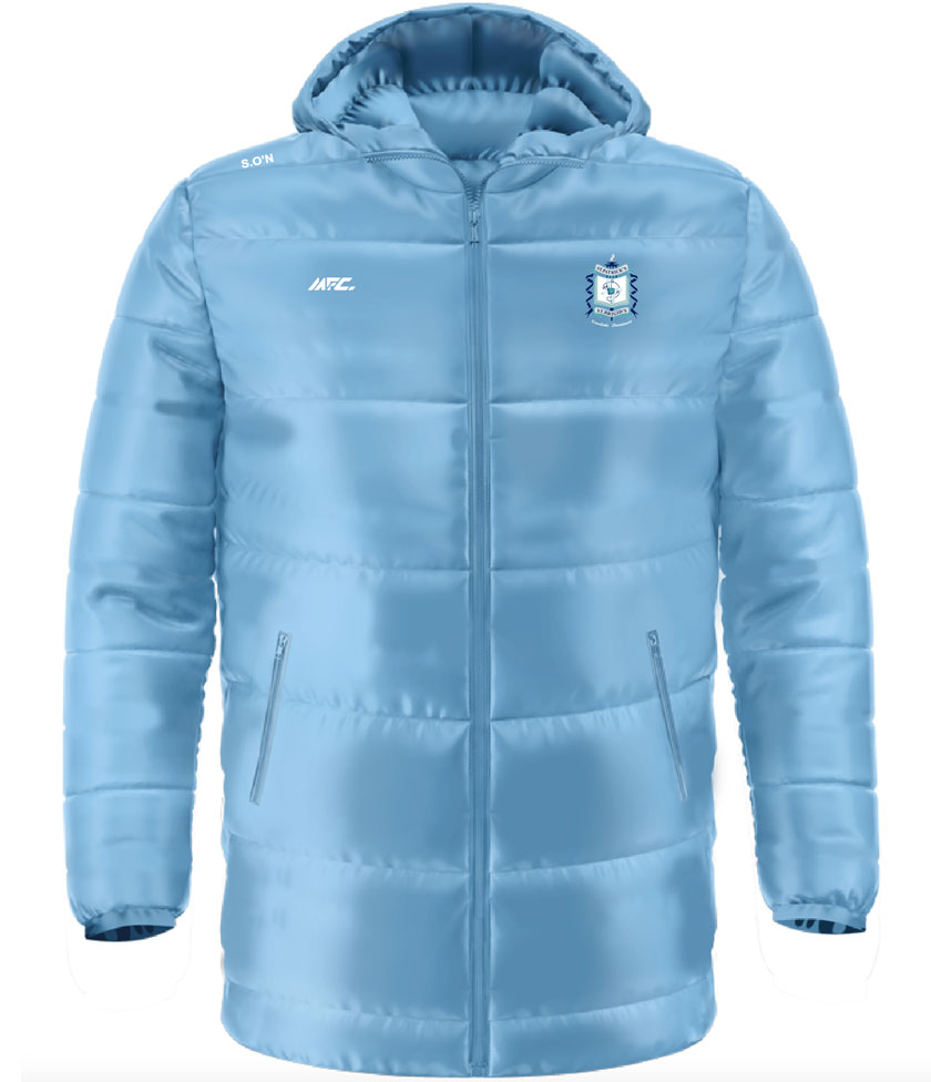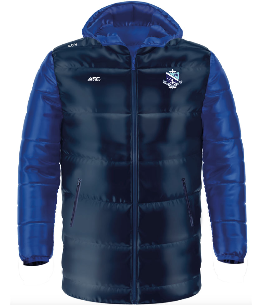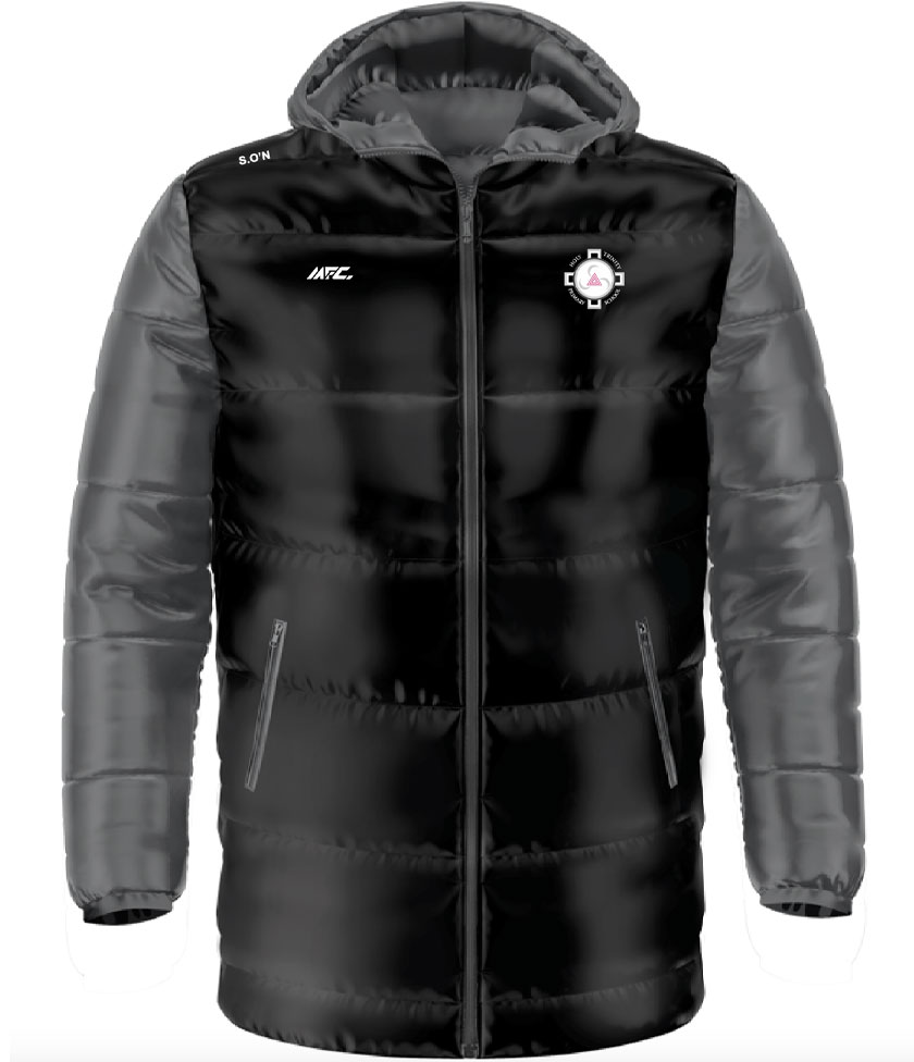 The MFC Touchline Jacket is made to feature your school crest, sponsor logo, and initials.