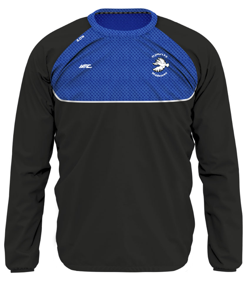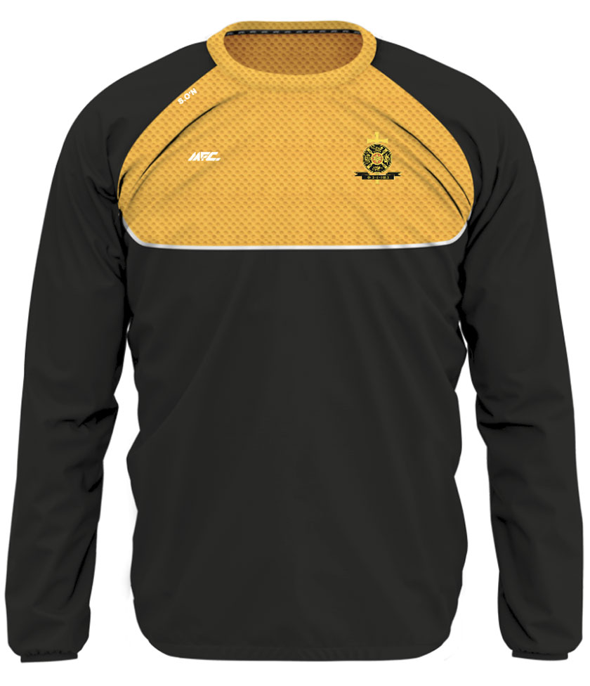 The MFC Crew Neck Windcheater is custom-made to feature your school crest, sponsor logo, and initials.